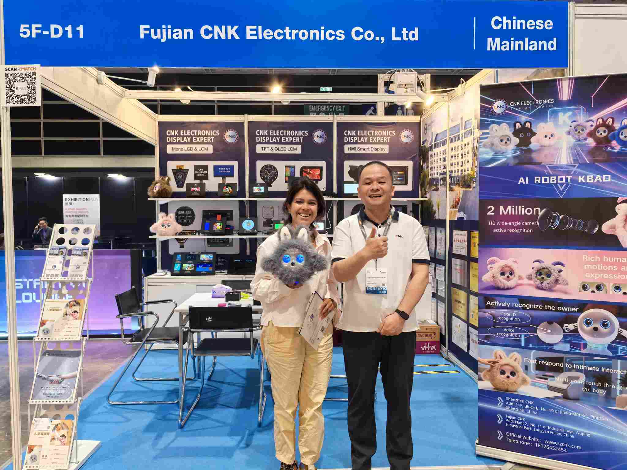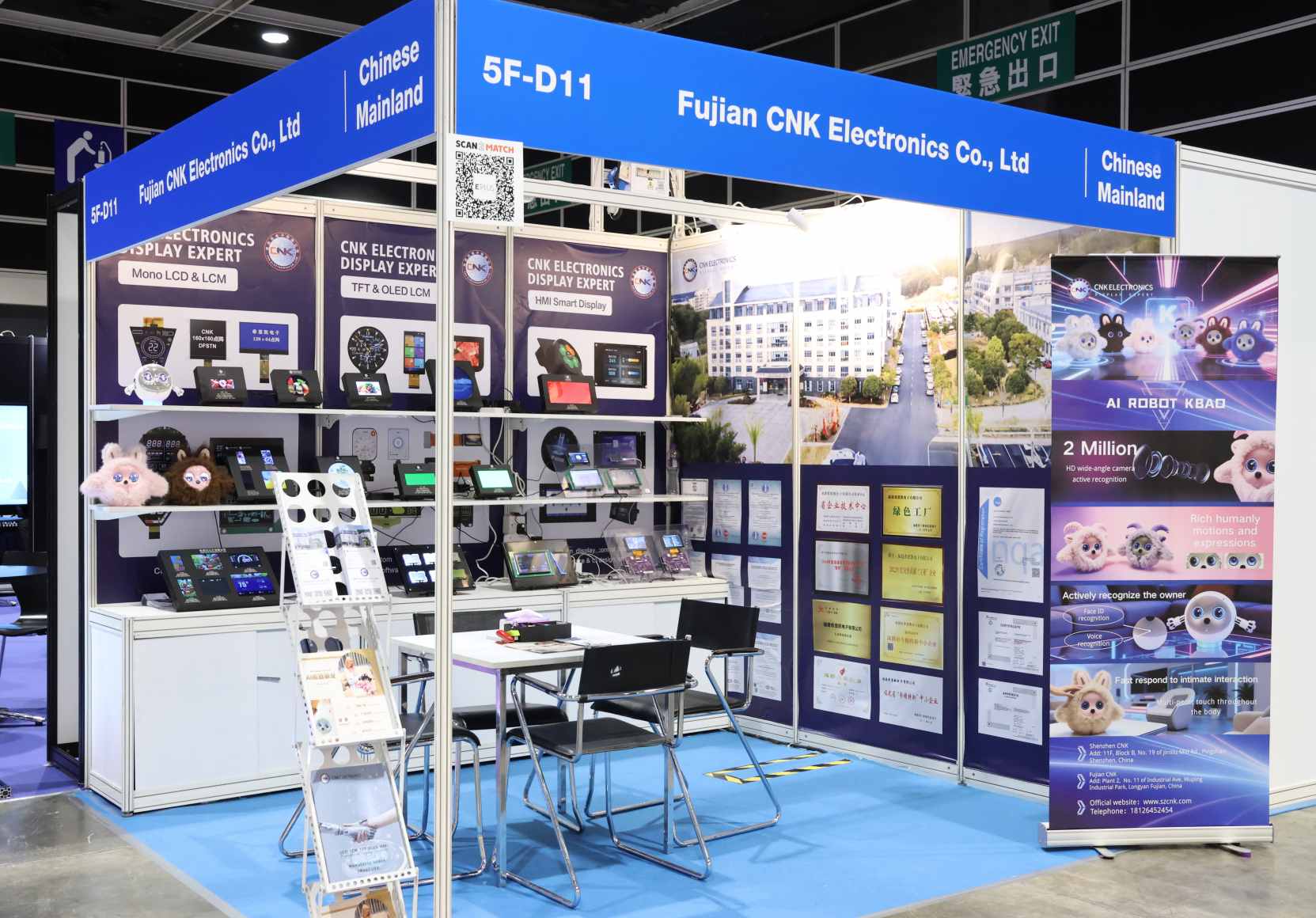The 2026 Hong Kong Electronics Fair kicked off in grand style. Fujian CNK Electronics Co., Ltd (CNK) made a stunning debut with its full-range display solutions and AI robot pet "K-Bot" at Booth 5F-D11, showcasing the innovative strength and application vitality of Chinese display technology to global buyers.